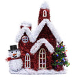 The little church decoration is constructed of tinsel and features adorable details such as a snowman with a top hat and scarf, and a tree with multicolored lights. Simply position this festive church on a tabletop or add a hook and hang it on the Christmas tree.