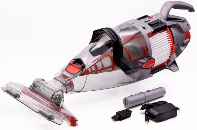 - A clear clip-lock canister enables debris to be seen